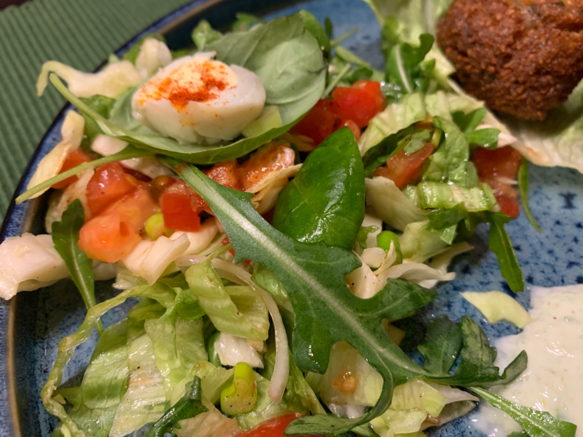 Salátával, pitában vagy lepénykenyérrel, csípős szósszal (például házi harisszával) tálaljuk.