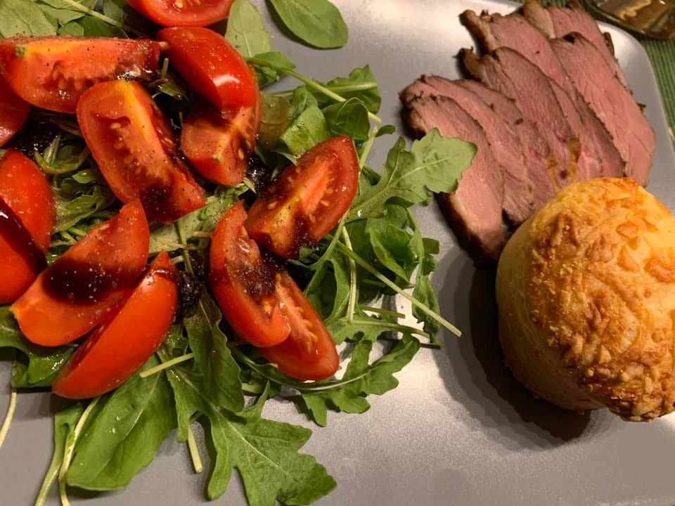 Sousvide kacsamell salátával és frissen sült pogácsával